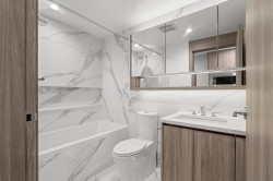 East facing 33rd-floor corner unit at Park George. Park George is the last phase of the most sought after urban community with a park-like setting in Surrey city centre. Offering 689 sq. ft. of bright designed living space, this 2-bedroom condo is finished with Concord's trademark solid finishings. EXCLUSIVE: smart storage in all kitchen cabinets, smart home integration, FULLY marble tiled washroom and matching kitchen backsplash, SAUNA/STEAM room, WATERFALL feature in main lobby. Located in the dynamic Surrey City Centre, just minutes from King George Station, SFU, and Central City Mall, this home offers the perfect mix of luxury and location.