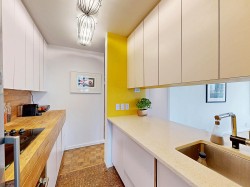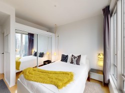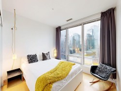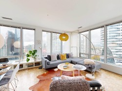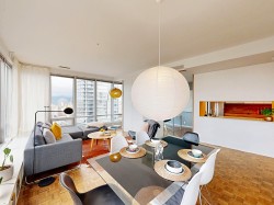 HOT HOT HOT. Convertible 2bd 2ba 810 Sq ft Airbnb friendly unit with AC in the historic Electra. Views of downtown, peak a boo mountain and water views. Own a piece of revenue generating history in the heart of Downtown Vancouver. This unit was configured to easily switch from a 2 bd to a 1 bedroom plus office with an innovative architecturally designed sliding wall system. An ideal Pied de Terre. Great for empty nesters, or even a small family. VERY COOl mid-century modern iconic bldg. Sauna, guest suites, library lounge area. Steps to shopping theatres restaurants, sea wall and everything the city has to offer. This Unit was recently vacated by tenants and has been completely refreshed with new paint and is ready to go to a new owner. Book your showing today! Must see!
