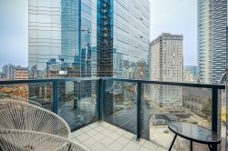 Welcome to Wall Centre in Downtown Vancouver! Experience air-conditioned luxury living at the highly sought-after Wall Centre. This beautiful 2-bed+office, 1-bath home features modern renovations throughout, including engineered hardwood flooring and granite countertops. There is no bylaws regarding short term accommodations The open, efficient layout offers a spacious living area and a generously sized primary bedroom w/c is large enough to comfortably fit a king-size bed. From a well-sized balcony, enjoy serene views of the manicured cobblestone courtyard, along with city, water, and mountain vistas. Unbeatable downtown location—just steps to Robson Street shopping, restaurants, hospitals, transit, and all urban conveniences. There is no bylaw restrictions on short term accommodations.