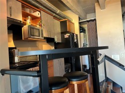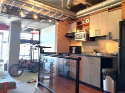 the MOSAIC - unique, sought after, downtown, urban/modern industrial vibe. West facing for sunsets, Juliette balcony, 10' ceiling, sleeping loft, gas fireplace, in unit laundry, separate storage locker and bike storage room. Check out the amazing elevators! Controlled entries front and back, pet friendly, cafés, restaurants and shops just steps away. Great for first time buyer, professionals, investors...