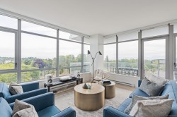 OPEN HOUSE Saturday, Nov. 29 - 12:00-1:30pm. This stunning sub-penthouse at The Escher offers 2 spacious bedrooms, 2 full baths, a large den, and over 1,300 sq ft of refined living space. Enjoy breathtaking panoramic views of the Pacific Ocean, Olympic Mountains, and downtown Victoria through expansive floor-to-ceiling windows. The open layout features 9' ceilings, a gourmet kitchen with quartz counters, induction cooktop, wine fridge, and enough space for hosting. The primary suite includes a spa-inspired ensuite with soaker tub, walk-in shower, heated floors, and custom closets. Relax on your sunny south-facing veranda or the rooftop patio. Includes secure underground parking, storage locker, bike room, and dog wash. Pet-friendly and steps to dining, shops, the YMCA, and Beacon Hill Park. Built by Chard Development, this unit has barely been used since purchased brand new and ready for immediate possession.