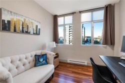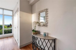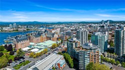 OH:Nov 22& 23, Sat& Sun @1-3pm. Enjoy unblocked panoramic views of the ocean, mountains, city, and St. Ann’s Academy from this beautiful corner sub-penthouse in the South Tower of ARIA. Perfectly positioned on the quiet side of the building, this home offers light, privacy, and a relaxed lifestyle in the heart of downtown.This 2beds & 2bath residence features a bright, open-concept living area with floor-to-ceiling windows, engineered hardwood flooring, granite countertops, Jenn-Air stainless-steel appliances with gas range, and a cozy gas fireplace. Both bedrooms are generous in size and ideal for comfortable everyday living. ARIA provides top-tier amenities including concierge service, a fitness centre with sauna and steam room, meeting and hobby rooms, and an inviting residents’ lounge. The building is pet-friendly, rentable, and has no age restrictions. A large, wheelchair-accessible underground parking stall and separate storage locker are included—perfect for seniors.