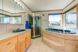 Outside, enjoy a large deck, hot tub under the trees, and an oversized garage with parking for five or more vehicles, including space for RV and boat.