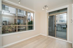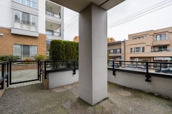 PACIFIC POINTE. GROUND LEVEL SOUTH/EAST CORNER UNIT, 2 BED, 2 BATH, SPACIOUS OPEN floor plan. This ground floor corner unit is perched above street level with access to a large patio area directly off the kitchen. Enjoy direct courtyard access as well. LOCATED IN THE HEART OF WHITE ROCK 'FIVE CORNERS' Walk to all sorts of amenities, transit, and the beach! This unit has in suite laundry, 1 parking stall, access to plenty of street side parking. Building has a rec room, garden area and bike storage.