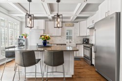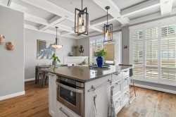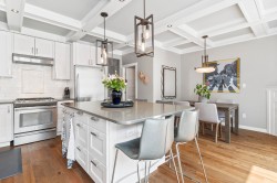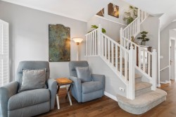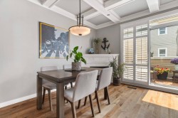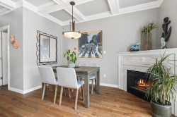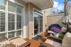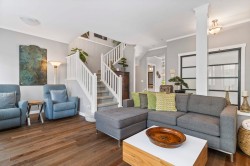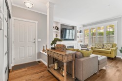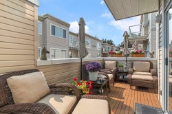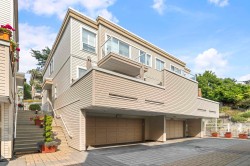 Executive-quality duplex townhome offering a true lock-and-leave lifestyle in an exclusive gated complex, steps from White Rock’s Promenade, sandy beach, shops & dining. Beautifully updated, this 2026 sq.ft., 3-level home features newer hardwood floors on main & upper, newer carpets, furnace & HWT (2017), plus A/C (2022). Bright open-plan main boasts a chef’s kitchen with quartz island, s/s appliances & 2 gas f/ps, along with a living room featuring custom built-ins. Private decks front & back extend living outdoors. Upstairs offers 3 bdrms incl. a primary with spa ensuite & California closet, plus one with Murphy bed. Lower level adds family/games or 4th bdrm with full bath & storage room. Extras: Roof 2022, ample storage inside & out & 2-car garage. 1 pet ok.