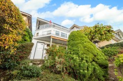 ONE OF THE FINEST PANORAMIC OCEAN VIEWS IN ALL OF WHITE ROCK stretching from Semiahmoo, the pier and San Juan Islands. Located on a coveted no thru road with no powerlines to impede your view. Features a total of 2,797 sq ft, very open main floor with views from every room. Lower floor has 3 bedrooms and an oversized 21'3 x 12' primary bedroom spanning the back of the house flowing onto it's own deck. Fully finished walk out basement contains a full bathroom, one bedroom, huge family room and roughed in suite. Low maintenance yard and detached double garage. Shows well!