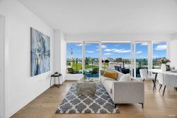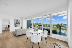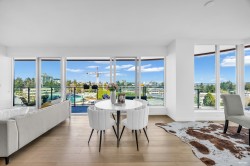 Welcome to SEMIAH by Marcon. This gorgeous and spacious 1,208 sqft 2 bed, 2 bath home and a flex area in the heart of White Rock is one of the best view buildings in the area. Sweeping mountain views reaching to Semiahmoo bay, this quality built home is finished with top of the line appliances including a wolf gas range and Bosch refrigerator & dishwasher. The cabinetry throughout is solid wood. Other bonus features air conditioning, plenty of sweeping windows, closets with built in shelving & spa-inspired ensuites. Don't miss out!