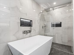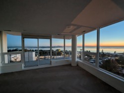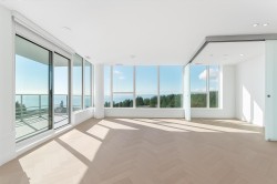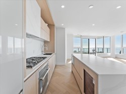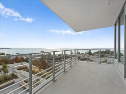 Solterra's Monaco. Southwest outlook with breathtaking ocean views & nightly sunsets over Semiahmoo Bay. This oversized, open-concept residence in White Rock's most coveted new address is stunning. 13-level concrete boutique tower with fitness / yoga room / lounge & rooftop amenities including putting green & community BBQ. Complete Thermador appliance suite: 36" integrated fridge, convection oven, 5-burner gas range, microwave drawer, plus 24" beverage cooler. Italian-designed kitchen with seamless quartz slab backsplash and integrated hood. Resort-caliber primary ensuite: double vanity, radiant-heated tile floors, freestanding soaker tub, & expansive glass shower. Ready for immediate occupancy! Walk to great restaurants, shopping & White Rock Beach. Urban luxury meets coastal living.