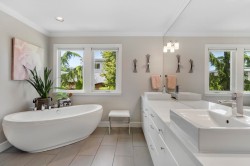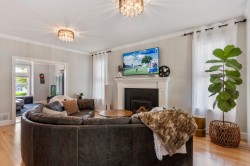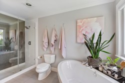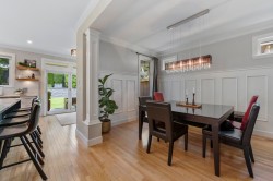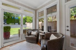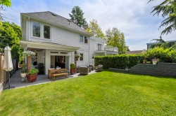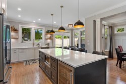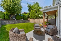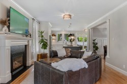 Jewel Box of a home just steps to the White Rock Beach. This gorgeous home has recently been extensively renovated 2023. Designer kitchen w/ natural gas stove, large island, new cabinets & surfaces. A nano wall in kitchen leads to walk-out open and covered patio. Fully private, landscaped backyard is West facing. Living area includes hardwood flooring, central a/c, dining room, natural gas fireplace in living room & family room. Foyer entry. Above three large bedrooms/three bath-balcony, sumptuous primary suite w/ soaker tub-dual shower walk-in, double sinks & walk-in closet. Basement has storage & one car garage. Home is 2,641 SF. In 2020: New siding, windows, soffits & gutters. Landscaped backyard 2018. New roof (2016). French immersion: Peace Arch Elem. & Earl Marriott Sec.