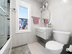 Discover the perfect blend of modern upgrades and timeless character in this exceptional property. As you approach, the stunning curb appeal will impress you, featuring beautifully crafted stone stairs, a new front deck, and a freshly paved driveway. Step inside and be welcomed by an elegant staircase that leads to a bright, spacious living room, where gleaming hardwood floors and rich wood trim create an inviting atmosphere perfect for gatherings. A large dining table fits effortlessly, making it easy to host family and friends for memorable meals. Venture into the brand-new kitchen, complemented by a stylish new bathroom and an oversized family/rec room, both offeringample space for relaxation and entertainment. Upstairs, you'll find four generously sized bedrooms that have been meticulously renovated, showcasing new gyprock, pot lights, trims, and doors. The entire bathroom has also been completely transformed with new features throughout. Looking for even more living space? The walk-up attic, already sprayfoamed and with subflooring installed, is ready for your creative vision. And for those who appreciate versatility, the basement offers an excellent workshop area and a brand-new shower. Don’t miss out on this fantastic opportunity. Bring your family and experience the perfect combination of modern conveniences and charming character in one remarkable property!