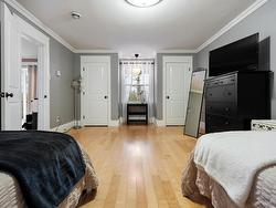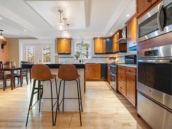 Discover an extraordinary bungalow situated on a private, treed acreage with abundant space to roam, flanked by an active brook on two sides. This standout property features a fully finished walk-out basement built with an insulated concrete foundation (ICF), providing durability and comfort. Designed with a smart layout, the home includes two spacious bedrooms on the main floor and an additional bedroom and a large den/office in the basement, accompanied by a full bathroom on each level. You'll appreciate the convenience of a mudroom that leads directly into the attached garage, along with a shed for ample storage. The kitchen is a remarkable highlight, boasting a massive island and top-of-the-line appliances, including a coveted pizza oven. Every detail has been meticulously crafted, with stunning custom decorative trim and elegant medallions throughout, perfectly paired with exquisite hardwood and ceramic flooring. Efficiency is a priority, with ETS heaters offering time-of-day power discounts and a newer heat pump ensuring optimal climate control year-round. Unwind on the inviting covered front verandah or explore the expansive 3.67 acres, where the soothing sounds of the babbling brook enhance your outdoor experience. Enjoy the ultimate in country-style privacy from your elevated deck, all without the hassle of a long commute to town.