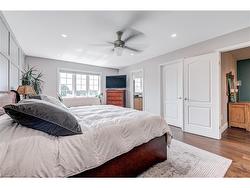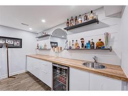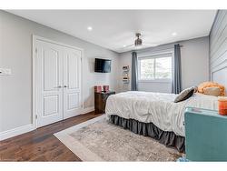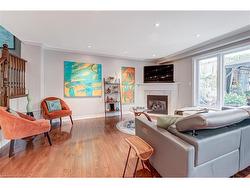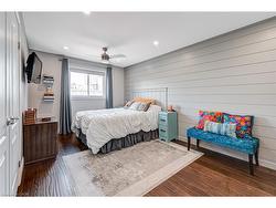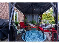 Gorgeous, professionally updated freehold townhome across from a Conservation Area with a number of paths and ponds for the enjoyment of nature lovers and dog enthusiasts. There is 1890 sq ft on the main and second floors, and almost 2700 sq ft of finished living space total. Inviting backyard with a deck, gazebo, 5-person hot tub, and lovely, mature greenery. Open concept main floor features hardwood flooring in the large living room with a gas fireplace, and in the dining room there are sliding doors to a deck. A stunning kitchen includes a gas stove, granite counter tops, a gorgeous tile backsplash and a breakfast/entertainment bar. The finished basement features luxury vinyl flooring, built-in custom wall-to-wall cupboards and drawers with bar fridge and a wet bar/refreshment area. Cabinetry surrounds an area for a wall mounted TV of up to an 85” with electric fireplace below. The second floor includes feature décor walls, a loft area, engineered hardwood throughout, custom blinds and a convenient laundry room. The spacious primary bedroom has a large 4-piece ensuite and walk-in closet. The main bath has a walk-in shower and a modern, free-standing vanity with 2 under mount sinks. The bedroom that is used as an exercise room has a Murphy bed offering a multi-purpose room including a guest room, exercise room or office. The Murphy bed has a storage cabinet and a pull out side table. Insulated garage is ideal for hobbyists in winter. Updates include AC/Furnace/Roof, 2 bathrooms, kitchen, basement, and pot lights throughout 3 levels including bedroom closets. Walk to amenities, shopping and restaurants. Two-minute drive to a large dog park. Close to highway access. This home is turnkey so just move in and enjoy all that this home and area have to offer!