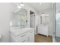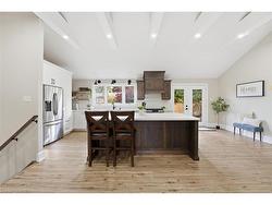 Nestled on a quiet cul-de sac in desirable North Brantford, this modern farmhouse has been completely renovated and reimagined for today's lifestyle. Featuring over 2800 sq.ft. across five spacious levels, the flexible floorplan provides exceptional multigenerational or separate income suite potential with its separate entrance to the lower level.Enjoy 4 bedrooms (potential for 5), 3 full baths, 2 half baths, vaulted ceilings, an open concept white shaker with espresso island, and a walk-through double garage with epoxy floor and bathroom in the garage. The pie-shaped lot offers ample parking and a fully fenced yard, perfect for relaxing or entertaining in this sought-after neighbourhood close to parks, top-rated schools, shopping, and major highways. Ideal for those families looking to be under 1 roof.Turnkey and move-in ready, this home delivers the ideal blend of privacy, convenience, and modern style in one of North Brantford's most coveted communities.