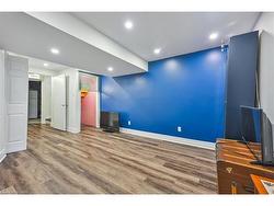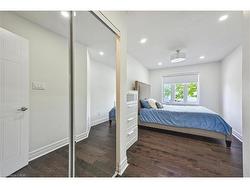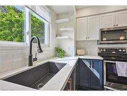 Step into luxury living with this fully renovated, turn-key smart townhome in the prestigious Headon Forest community. This designer-inspired 3+1 bedrooms, 2.5 bathrooms residence offers a seamless blend of style, modern technology, and cozy comfort. Featuring high-end hardwood flooring, custom accent walls, smart switches, designer lighting, and LED pot lights throughout, every detail has been meticulously curated. The stunning open-concept main floor boasts a chef’s kitchen with quartz countertops, a dramatic double waterfall island, full ceiling height quartz backsplash, black kitchen faucet, with matching black rectangle deep sink, plus premium stainless steel appliances. Walk out to a private backyard oasis from the dining area through glass sliding doors. A modern chic powder room and interior garage access complete the main level. Upstairs, retreat to three spacious bedrooms, including a serene primary suite with walk-in closet. A spa-inspired four piece bathroom on the upper level. The fully finished lower level adds flexible living space with a sleek family room, or as a fourth bedroom or as a bonus room perfect for guests or a home office, plus 3-piece bath with glass walk-in shower, a separate dedicated laundry room, and an additional separate large built-in storage room. Prime location close to top-rated schools, Millcroft Golf Club, parks, trails, shopping, transit, and major highways. This is modern, low-maintenance luxury living at its finest, and easiest!