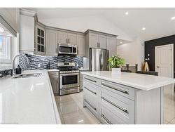 Welcome home, where luxury feels effortless and every detail has been crafted for you with care. Built with the precision and finishes a builder would choose for their own family, this 3-bedroom, 3-bath residence blends elevated design with genuine comfort, creating a space that simply feels wonderful to live in. The sophisticated entry door makes a striking first impression-beautiful, secure, and a preview of the quality inside. Step into a space with soaring ceilings, warm heated flooring throughout the main floor, and a layout designed for both everyday ease and memorable gatherings. The primary suite is a true retreat with a coffered ceiling, organized walk-in closet, and a spa-inspired ensuite with double vanity and glass walk-in shower. Natural light pours through expansive rear windows and French doors, framing peaceful backyard views. Automated exterior shutters offer blackout comfort, enhanced security, sound reduction, and notable energy savings-ideal for quiet mornings or deep, restful sleep. The kitchen blends style and function with upgraded cabinetry, quartz countertops, premium appliances, and a generous island perfect for cooking and entertaining. Two elegant gas fireplaces add warmth and ambiance, while a Russound whole-home audio system with four zones sets the mood throughout. The fully finished lower level extends your living space with 9' ceilings, a spacious recreation room, full bathroom, and heated hydronic flooring. Outside, the backyard feels like a private escape: lush landscaping maintained by a Rainbird irrigation system, open greenspace beside the home-used only weekday business hours - quiet on evenings, weekends and summer. Close to the 401, scenic trails, excellent schools, and shopping, this location offers both convenience and calm. With parking for five, a concrete driveway, inside-entry garage, and a move-in-ready presentation, this exceptional home invites you to simply move in and start living!