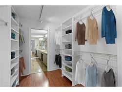 Welcome to The Highlands by the Park; 20 Berkley Road. Nestled atop a hill at the end of a quiet cul-de-sac in historic West Galt, this prestigious condominium offers tranquility, privacy, and sweeping views of nature and the city skyline. Overlooking a majestic woodlot, Victoria Park, and beyond, this building is one of Cambridge's hidden gems. This spacious 2,418 square foot, carpet-free unit offers a rare combination of size, layout, and natural light. With 3 generously sized bedrooms, 2 full bathrooms, and a thoughtfully designed floor plan, it’s ideal for those seeking a blend of comfort and functionality. Step into an impressive foyer with mirrored walls and a large closet before entering the bright eat-in kitchen, complete with ceramic tile, crisp white cabinetry, built-in range top, track lighting and a cozy breakfast nook that looks out over lush greenery. The kitchen opens into a formal dining room with laminate flooring and elegant wall sconces; perfect for entertaining. The adjacent oversized living room features a wood-burning fireplace (sold in as-is condition) and leads to a bright all-season solarium with floor-to-ceiling windows, perfect as a den, office, or creative space. Down the hallway, you’ll find three spacious bedrooms, including a large primary suite with two large windows, an expansive walk-in closet, and a 5-piece ensuite. A second 4-piece guest bath serves the remaining bedrooms. The in-suite laundry closet is conveniently tucked away off the main hallway. Building amenities include a rooftop terrace with panoramic views, ample seating, and barbecue, a party room with full kitchen and lounge area, meeting room, exercise room, and beautifully maintained common spaces. This unit includes one underground parking spot with a tandem storage locker. Don’t miss this rare opportunity to live in a peaceful, elevated community surrounded by nature, just minutes from the charm and culture of West Galt.