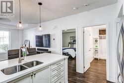 Step into homeownership with this incredible condo townhouse - the perfect first home in a vibrant neighbourhood close to shops, parks, and all your daily essentials. This bright, modern, and freshly painted 1-bedroom, 1-bathroom unit offers over 800 square feet of stylish living space, with vinyl flooring throughout and soaring 9-foot ceilings that create an open, airy feel. Enjoy your morning coffee or unwind in the evening on your private porch - your own peaceful outdoor retreat. The sleek kitchen features quartz countertops, extended cabinetry, stainless steel appliances, and a breakfast bar which is ideal for cooking, casual dining, or entertaining guests. The sun-filled primary bedroom offers generous space and a large walk-in closet to keep everything organized, with an oversized semi-ensuite bathroom. Located on the ground floor, this unit offers comfort and convenience, including in-suite laundry and a private garage with direct access to the unit making daily life seamless. The community also features outdoor seating areas, a park, visitor parking, office space, a gym, and a recreation room with a full kitchen. Move-in ready and designed for easy living, this home is the perfect place to start your homeownership journey. Come see it today and imagine yourself living here! (id:7525)