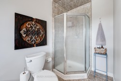 Gorgeous, professionally updated freehold townhome across from a Conservation Area with a number of paths and ponds for the enjoyment of nature lovers and dog enthusiasts. There is 1890 sq ft on the main and second floors, and almost 2700 sq ft of finished living space total. Inviting backyard with a deck, gazebo, 5-person hot tub, and lovely, mature greenery. Open concept main floor features hardwood flooring in the large living room with a gas fireplace, and in the dining room there are sliding doors to a deck. A stunning kitchen includes a gas stove, granite counter tops, a gorgeous tile backsplash and a breakfast/entertainment bar. The finished basement features luxury vinyl flooring, built-in custom wall-to-wall cupboards and drawers with bar fridge and a wet bar/refreshment area. Cabinetry surrounds an area for a wall mounted TV of up to an 85" with electric fireplace below. The second floor includes feature décor walls, a loft area, engineered hardwood throughout, custom blinds and a convenient laundry room. The spacious primary bedroom has a large 4-piece ensuite and walk-in closet. The main bath has a walk-in shower and a modern, free-standing vanity with 2 under mount sinks. The bedroom that is used as an exercise room has a Murphy bed offering a multi-purpose room including a guest room, exercise room or office. The Murphy bed has a storage cabinet and a pull out side table. Insulated garage is ideal for hobbyists in winter. Updates include AC/Furnace/Roof, 2 bathrooms, kitchen, basement, and pot lights throughout 3 levels including bedroom closets. Walk to amenities, shopping and restaurants. Two-minute drive to a large dog park. Close to highway access. This home is turnkey so just move in and enjoy all that this home and area have to offer!