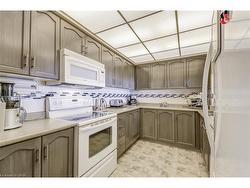 Welcome to this spacious 2 bed, 2 bathroom condo at The Renaissance in Stoney Creek with stunning north-facing views of Lake Ontario and the Toronto skyline. Large windows provide picturesque views and abundant natural light. Primary bedroom includes a 4-piece ensuite bathroom, and two closets. Through the French doors, enjoy the sunroom, perfect for relaxation or to use as a den/office. Amenities include a party room, library, workshop, shuffleboard/billiards room, squash court, gym, change rooms, and saunas. This unit includes an underground parking spot, a locker for extra storage, and condo fees that COVERS ALL UTILITIES or a worry-free lifestyle. Easy access to shopping, trails, public transit, highways and more!
