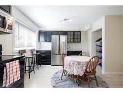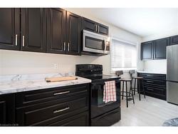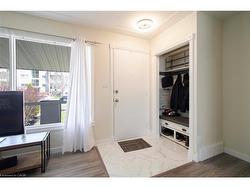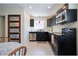 Charming Semi-Detached with In-Law Suite on a Quiet Cul-de-Sac! Welcome to 187 Clover Place — tucked away at the end of a peaceful cul-de-sac in a friendly, family-oriented neighborhood. This beautifully maintained semi-detached home offers 3 bedrooms, 2 full bathrooms, and a versatile in-law suite with a separate entrance — perfect for extended family or additional income potential! From the moment you arrive, you'll be greeted by inviting curb appeal, lovely garden beds, and a spacious front porch — ideal for enjoying your morning coffee or relaxing with a good book. Step inside to find a bright, open-concept main living area with a large window that fills the space with natural light. The eat-in kitchen is both stylish and functional, featuring stainless steel appliances, pot lighting, a built-in microwave/range hood, extra built-in cabinetry, and convenient main-floor laundry with a stackable washer/dryer. Upstairs boasts the charm of original hardwood floors, three sun-filled bedrooms, a 4-piece bathroom, and plenty of closet space. Off the kitchen, a side entrance provides easy access to the fully fenced backyard and leads to the lower-level in-law suite, complete with a kitchenette, updated flooring, private laundry, and its own separate entrance — ideal for multi-generational living or hosting guests. Enjoy the outdoors in the private backyard oasis, featuring a deck, two storage sheds (one with electricity), and a stunning mature magnolia tree. This home is located close to everything — minutes from downtown Kitchener, highway access, schools, public transit, parks, and trails. Don’t miss your chance to own this move-in-ready gem in a prime location!