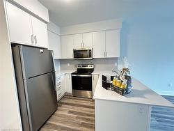 Welcome to 1100 Lackner unit 421: A brand-new, airy 1-bedroom, 1-bathroom condo located in the highly desirable Lackner Ridge community of Kitchener. Thoughtfully designed and move-in ready, this stylish unit offers a spacious open-concept layout featuring 9-foot ceilings, abundant natural light, and elegant laminate flooring throughout. The contemporary kitchen is equipped with quartz countertops and stainless steel appliances, ideal for both daily living and entertaining. The inviting living and dining area walks out to a large private balcony overlooking a serene, tree-lined walking trail, perfect for relaxing outdoors. The private primary bedroom includes a generous closet and access to a full bathroom. Added convenience includes in-suite, full-size laundry located in a dedicated laundry room. This unit comes with one surface parking space and a secure locker on the third floor for extra storage. Residents can enjoy comfort-style amenities in a welcoming building, including a gracious lobby, luxurious lounge, elegant party room, visitor parking, and shared sitting areas. Ideally situated just minutes from major shopping destinations such as Walmart, Costco, Canadian Tire, and Real Canadian Superstore, and within walking distance to Food Basics, Rexall, and Dollarama. Easy access to Highways 7, 8, and 401, public transit, nearby bus routes, the GO Station, and close proximity to Wilfrid Laurier University, University of Waterloo, and Conestoga College make this location exceptionally convenient. This condo offers excellent opportunity for professionals or couples seeking quality living in a prime location. Book your showing today!