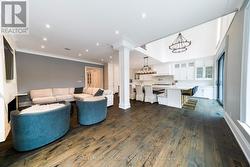 One-of-a-kind custom home with exquisite luxury finishes! With 6,300 sqf of total livable area, this property boasts a magnificent chefs gourmet kitchen, perfect for entertaining guests with its 12-person seating. You'll be captivated by the stunning hardwood flooring that runs seamlessly throughout the entire home. With 4 bedrooms total and 6 bathrooms, including 3 ensuites, every family member can enjoy their own private sanctuary. Basement and upper floors feature heated floors, providing ultimate comfort. Master bedroom, boasting 16 ft vaulted ceilings that create a grand and inviting atmosphere. The main level features 10 ft ceilings, with an impressive 18 ft open space that extends all the way to the upper level, creating an open and airy ambiance. Indulge in the ultimate movie-watching experience in the fully functioning 1930s-esque movie theater, complete with a concession stand, custom speakers, and tiered 2-level seating. Located in the sub-basement, this unique feature ensures complete soundproofing for uninterrupted enjoyment. Step outside and be transported to your own private oasis. A 12x10 window wall leads you to the breathtaking outdoor space, featuring a massive exotic lagoon-style saltwater pool. Complete with a built-in rock wall waterfall and slide, this pool is the epitome of luxury and relaxation. But the extravagance doesn't end there! This property also includes a secondary house with full heating and AC, allowing you to enjoy all seasons comfortably. The secondary house features a gorgeous built-in brick pizza oven and fireplace. With a heated driveway and rear yard walkway! Don't miss out on the opportunity to call this extraordinary custom home your own. Experience the epitome of luxury, craftsmanship, and unparalleled design. (id:7525)