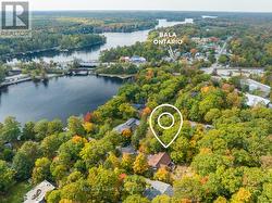 This architecturally striking circa 2005 in-town Bala home offers over 3,800 sq. ft. of finished living space, with handsome curb appeal, views of Lake Muskoka. A premier location on a private 80' x 190' lot featuring mature trees, granite outcroppings, and extensive gardens. The home boasts a NEW (2025) roof, stone pillars, a covered front porch, and an attached 1.5-car garage, all situated on a quiet recessed street steps from all Bala's amenities, including the Historic Bala Walk, Don's Bakery, shops, dining, public docks, boat launches, and more. Inside, the welcoming foyer leads to a spacious open-concept living, dining, and kitchen area, a propane fireplace, 5-burner propane stove, quartz countertops, stainless steel appliances, and ample cabinetry. The main floor also features a primary suite with a walk-in closet, a luxurious 5-pc ensuite, and access to a sun-soaked southwest-facing sunroom. There is a guest bedroom with ensuite privilege to a 3-pc bath, and a generous laundry/mudroom. The fully finished lower level with its own entrance offers a bedroom, office, boardroom, 3-pc bathroom, and garage access, making it ideal for those who work from home or as an in-law suite. Recent upgrades include newer appliances, quartz countertops, a kitchen sink, fresh paint, and a leaf guard system. This solid, well-maintained home combines privacy, comfort, and versatility in the heart of Muskoka, convenient to Port Carling, Gravenhurst, Hardy Park, and multiple lake access points. For those looking for affordable quality living in the heart of Muskoka ... a must see! (id:27)