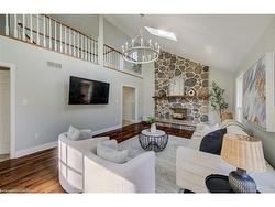 Welcome to serenity!! This stunning home is situated in a beautiful and QUIET neighbourhood with mature trees, yet only minutes to major hwys! Gorgeous fireplace with stone feature sets the tone for this lovey home creating a welcoming atmosphere. Professional upgrades include a Kitchen a chef would love! Stunning cabinetry, pot lighting, quartz countertop, island & stainless steel appliances. Main level primary bedroom with walk-in closet and fully updated bath. The view from the upper level looking over the living room is breathtaking!! An additional added feature, is the open upper hall (could be used as home office). Wood floors, freshly painted and ready for YOU! Enjoy this summer is a VERY large fully fenced yard where you can enjoy some family time!