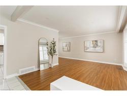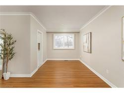 Opportunity knocks in College Park! This beautifully renovated bungalow backing onto Ridgeview Park offers a perfect blend of modern upgrades and timeless charm, ideal for families or as a rental property for Sheridan College students potential for separate basement suite. Boasting five bedrooms across two levels, two full bathrooms, and spacious communal areas, the home has been impeccably updated with new flooring, pot lights, paint, appliances (except the dryer), stairs, sump pump, roof, and gutter covers in 2024. An updated electrical panel and two bedrooms added to the basement (2020), and a newer furnace and water tank add further appeal. Outside, the private backyard features a large deck and mature trees overlooking tall trees and green space, creating a serene retreat. Inside, the bright L-shaped living and dining rooms shine with wide-plank flooring, crown mouldings, and California shutters, while the lovely white kitchen with quartz counters and new appliances flows into a sunlit breakfast room opening to the deck. The main floor includes three serene bedrooms and a renovated 4-piece bathroom, while the finished basement extends the living space with a recreation room, two additional bedrooms, and a modern 3-piece bath. Situated within walking distance of schools, parks, trails, Oakville Place Mall, and Sheridan College, it also offers quick access to the QEW/403, and Oakville GO Train Station for convenient commuting. This move-in-ready home awaits its new owners or tenants. No pets & No smoking.