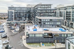 Rare ground-floor suite offering true indoor/outdoor living. Soaring 12 ft ceilings, 680 sq.ft. of interior space plus a private 220 sq.ft. patio with water, hydro & gas hook-ups and direct walk-out access to parking-no elevators needed.Open, airy layout with oversized windows, 1 bedroom + versatile den, 4-pc ensuite with tub/shower and a separate 2-pc bath. Stainless steel appliances, stacked washer/dryer & custom window coverings included. Ground-level patio expands your living area-ideal for BBQs, gardening, pets or outdoor dining.Includes: 1 parking (P1 #79), locker (Level 1 #489), 3 fobs, garage remote & mailbox keys.Amenities: 24-hour concierge, gym, party room with billiards, outdoor BBQ areas. Bell fibre Wi-Fi included. Utilities metered via Metergy. Steps to GO Transit, QEW/407, parks, shops & conveniences. A condo that lives like a townhome.
