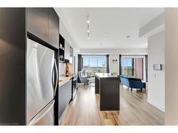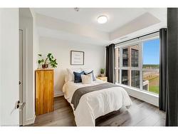Welcome to this beautifully upgraded 2-bedroom, 2-bathroom condo with 848 square feet of sun-filled living space - one of the largest 2-bedroom units in the building! With southwest exposure, this unit boasts a private balcony with serene, unobstructed views of the pond perfect for morning coffee or sunset unwinding. Inside, you'll find timeless finishes throughout, including quartz countertops, stainless steel appliances, and sleek cabinetry in the modern kitchen. Both bedrooms feature massive double closets, while the open-concept layout is ideal for entertaining or everyday living. Enjoy top-tier building amenities including a fully equipped gym, concierge service, stylish party room, and secure underground parking. One parking space and a convenient storage locker are included. Located steps from Fortinos, Starbucks, restaurants, community centres, and scenic trails like 16 Mile Creek. Commuters will love the quick access to Highways 403 & 407.Ideal for professionals, first-time buyers, or downsizers seeking comfort, convenience, and natural beauty in a vibrant Oakville setting.