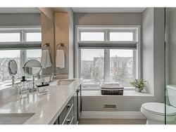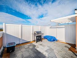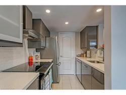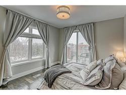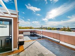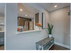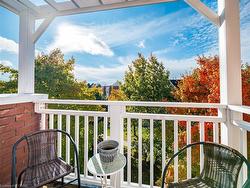 Welcome to this stunning townhome offering over 1200 sq ft of modern living space. Enjoy an abundance of natural light through large windows showcasing beautiful views of the creek and ravine. This home features two private balconies, plus a bonus rootop terrace, perfect for relaxing or entertaining outdoors. Located in a highly walkable neighbourhood- steps to shops, restaurants, schools, the recreation center and scenic walking trails right at your doorstep. Commuting is a breeze with easy access to the Q.E.W, 407, 403 and the Go Train all just minutes away. Experience comfort, convenience and contemporary living all in one exceptional home! Many upgrades including: professionally painted, New smooth flat ceilings, New pot lights, New washer/Dryer 2025, New roof top door 2025, New sliding door 2025, New window in primary bedroom 2025, New front door on order, New deck terrace tiles, Roof terrace insulation, Updated appliances, Carpet free.
