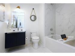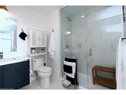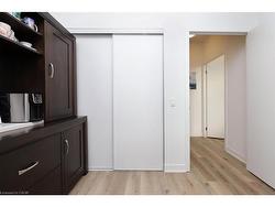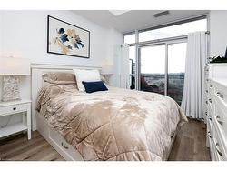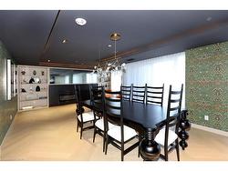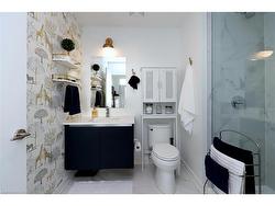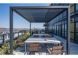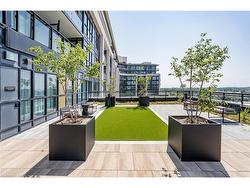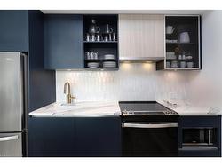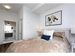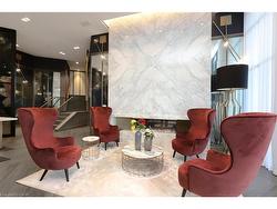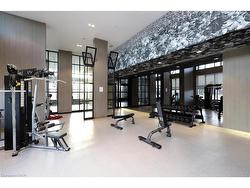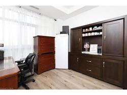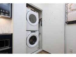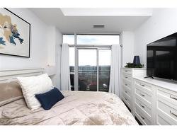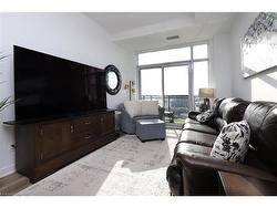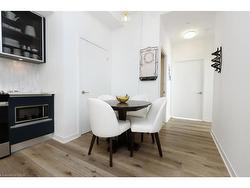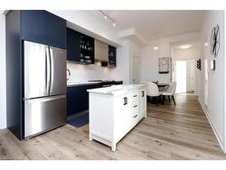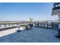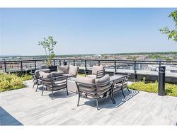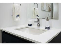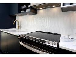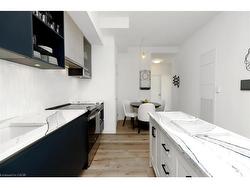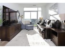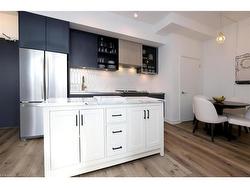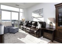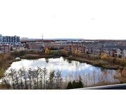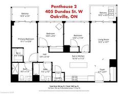 Penthouse 2 at Distrikt Trailside offers 1,070 sq. ft. of stylish living with 10' ceilings, 3 bedrooms, 2 owned parking spaces, and 2 owned lockers, all in a true top-floor setting with no one above you. This residence is 1 of only 2 of the largest penthouse suites in the entire building, making it an exceptionally rare offering. The west-facing exposure overlooks Gladeside Pond and the escarpment, filling the home with natural light and peaceful views. A major benefit of this suite is the true 3-bedroom layout. Many units offer only 2 bedrooms with an open den, but here all 3 rooms are fully enclosed, creating excellent flexibility for families, multi-generational living, guests, or a private office. The 2 owned parking spaces are another standout feature, providing long-term security and convenience in a building where parking is limited. The home also includes 2 owned lockers, offering valuable private storage. Few suites provide this combination of extra parking, extra storage, and 3 full bedrooms. Inside, the home features luxury vinyl plank flooring and a modern Trevisana kitchen imported from Italy, complete with upgraded quartz countertops. 2 balconies extend the living space outdoors, each with a gas BBQ hook-up, and the primary bedroom enjoys its own balcony, creating a private retreat to enjoy the sunset in the west. 2 heat pumps provide efficient and customizable climate control. Building amenities include 24-hour security, concierge service, a party room, a fully equipped gym, a dog-washing station, and an indoor, secure bicycle storage area on the main floor. The location is excellent with easy access to grocery shopping, restaurants, schools, playgrounds, the library, and the Sixteen Mile Sports Complex, with Lions Valley Park and the Sixteen Mile Creek trails just a short walk away. Penthouse 2 at 405 Dundas Street W offers rare space, valuable owned features, luxury top-floor living, and maintenance-free convenience with every amenity close at hand.