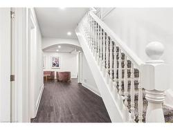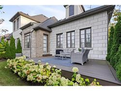 Welcome home to the prestigious 25 Arbourvale Commons, an exquisite townhome in St. Catharines' exclusive Southend. This luxurious custom-built residence seamlessly blends sophistication and comfort. As you arrive, the grand stone facade and elegant European-inspired design create a striking first impression. Inside, the open-concept living area features soaring 20-foot ceilings, large windows with automated blinds, and a sleek fireplace. The gourmet kitchen is a culinary dream, boasting a quartz island, built-in breakfast nook, and high-end appliances. The main-floor primary suite offers a spacious walk-in closet and a lavish 4-piece ensuite. Upstairs, you'll find a guest bedroom, a beautifully finished full bathroom, and an office space that can easily be converted into a bedroom if desired. The finished basement provides versatile living.