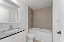 Distillery District Living in this Brand New, Sun-Soaked Studio at The Goode Condos by Graywood! With palettes of crisp whites, cool greys, warm accents and matte black details, this functionally laid-out suite features floor-to-ceiling windows, white oak laminate floors and an expansive 99+ sq ft balcony. Equal parts relaxed and refined, distinct and distilled, expansive and elevated with every inch finely tuned to maximize light and living space. The European-inspired eat-in kitchen boasts stone grey quartz counters with backsplash that waterfalls up to the eucalipto white cabinetry, a stainless steel sink, built-in stainless steel Fulgor Milano appliances, stylish track lights & storage drawers. The open concept living/dining is framed by east-facing floor-to-ceiling windows and a walk-out to the 99+ sq ft private balcony. Enjoy sunrise and all-day sun while overlooking the outdoor swimming pool and beyond to the Lake. The 4-piece resort-style bath is decked out with porcelain floors, a grey quartz vanity with under-sink storage, a 2-in-1 shower/soaker tub with sandy-toned subway porcelain back splash (+ an adjustable handheld attachment) & a dual-flush toilet. Ensuite energy-efficient stacked washer and dryer! Just in time to enjoy the annual Distillery Winter Village Christmas Market and all that the Distillery District has to offer!