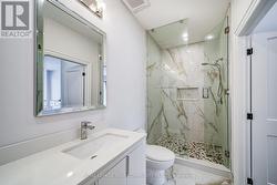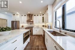 Step into this exceptional detached raised bungalow, where modern luxury meets effortless everyday living. Offering over 3,300 sq. ft. of beautifully finished space, this home is crafted to impress from top to bottom. The main floor features three generously sized bedrooms and two spa-inspired 3-piece bathrooms, each adorned with elegant porcelain tile. The heart of the home is the open-concept kitchen and dining area, showcasing custom quartz countertops, a striking waterfall island, and premium stainless steel appliances-perfect for both cooking and entertaining. Bright and inviting, the living room is enhanced by a soaring cathedral ceiling and opens onto a large covered composite deck with modern glass railings, creating an ideal indoor-outdoor retreat. A thoughtfully designed main-floor laundry room with a built-in pantry adds convenience without compromising style. The fully finished lower level provides outstanding extra living space, complete with three spacious bedrooms with above-grade windows, a chic 3-piece bathroom, and a large kitchenette featuring custom quartz counters. The expansive dining and family area is perfect for hosting gatherings or creating a private suite for extended family. Move-in ready and loaded with high-end finishes and carefully selected upgrades, this home is a rare find that truly must be seen to be appreciated. (id:7525)