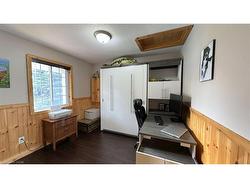 Located in the popular Lakes of Wasaga resort community, this charming year-round home offers 856 square feet of living space, including a bright two-season sunroom. The community provides a resort lifestyle with access to tennis courts, mini golf, pools, and children’s play areas. Inside, the home features two bedrooms and a three-piece bathroom with a newly updated sink backsplash. The spare room includes a built-in Murphy bed and desk, providing a flexible option for guests or a home office. The open-concept living room, dining room, and kitchen showcase cathedral pine ceilings and walls, creating a warm, inviting atmosphere. Convenience is enhanced with a stacked washer and dryer. Additional highlights include an in-ground irrigation system, generous-sized shed, and freshly stained front and back decks as well as the sunroom floor. A new AC unit was installed in May 2025. The backyard features a fire pit, perfect for relaxing evenings. The home also offers a four-foot crawl space with ample storage, housing the furnace and hot water heater. A paved driveway provides parking for three vehicles. From here, it’s just a short walk along two dedicated paths to New Wasaga Beach. Monthly fee of $772.01 (on leased land) includes property taxes, lease fee, maintenance.