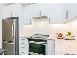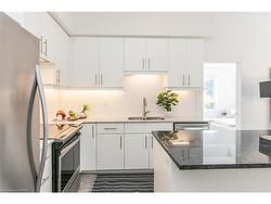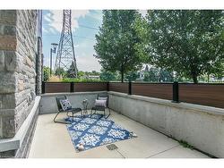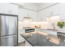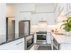 Ground-floor living meets ultimate convenience at Blackstone! This modern 2-bedroom, 2-bath condo offers over 800 sq. ft. plus a massive 270 sq. ft. private patio with natural gas hookup—perfect for BBQs or a fire table. Ideal for dog owners, walkers, and cyclists, you can drop groceries at your door, skip the elevators, and enjoy easy in-and-out access. Inside, you’ll find an upgraded kitchen with a granite topped island with built-in microwave, stainless steel appliances, under-mount sink with new faucet, extended upper cabinets, white subway tile backsplash, and plenty of pull-out drawers. The open-concept layout features luxury laminate flooring throughout—completely carpet-free. The spacious primary suite includes its own bathroom, while the second bedroom and full bath offer flexibility for guests or a home office. A large laundry closet with stackable washer and dryer adds everyday practicality. Freshly painted and move-in ready, this unit also gives you access to Blackstone’s impressive amenities: a stylish party room, business centre, and fitness facility.